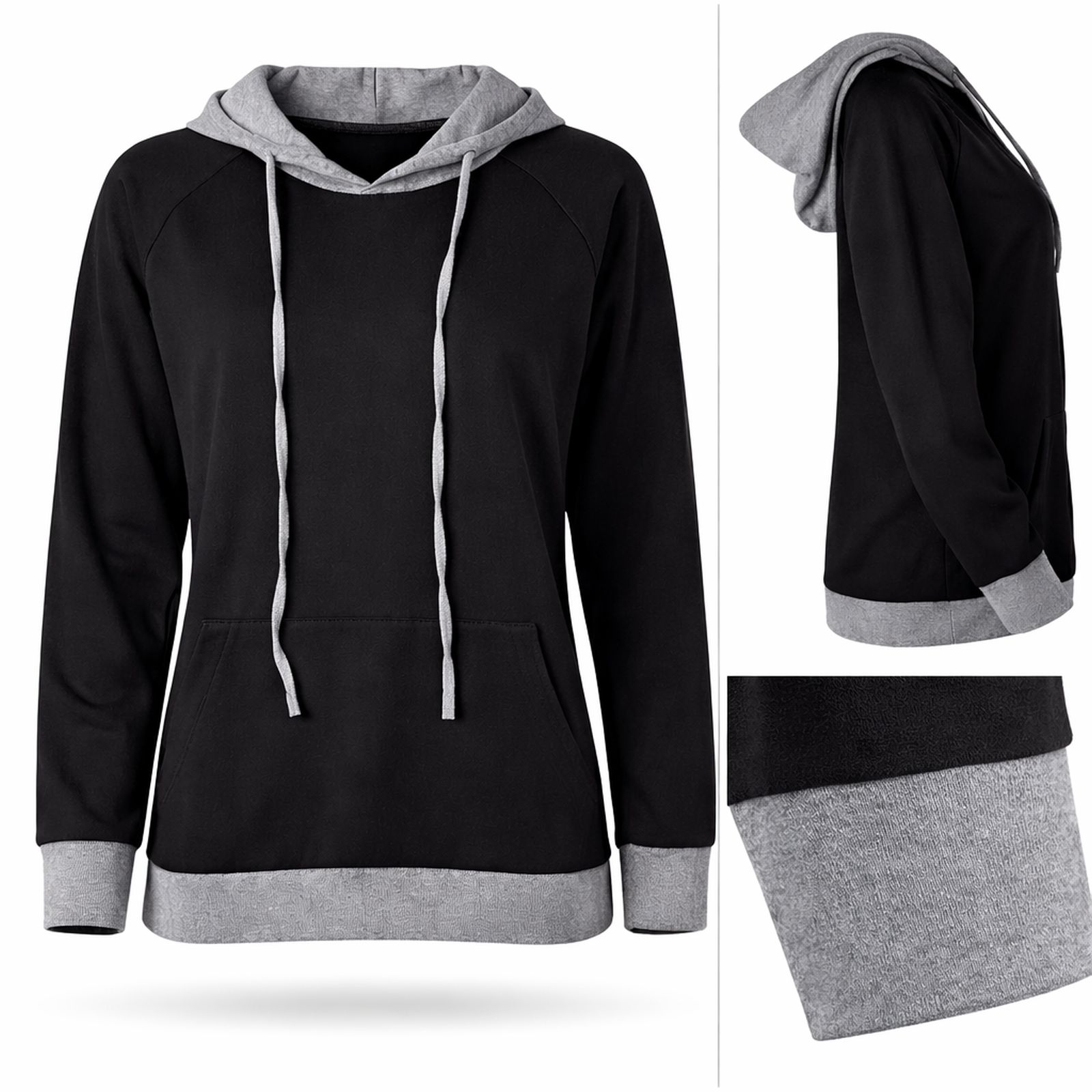 Bluza damska kangurka czarna oversize cienka wiosenna XL – Mundido