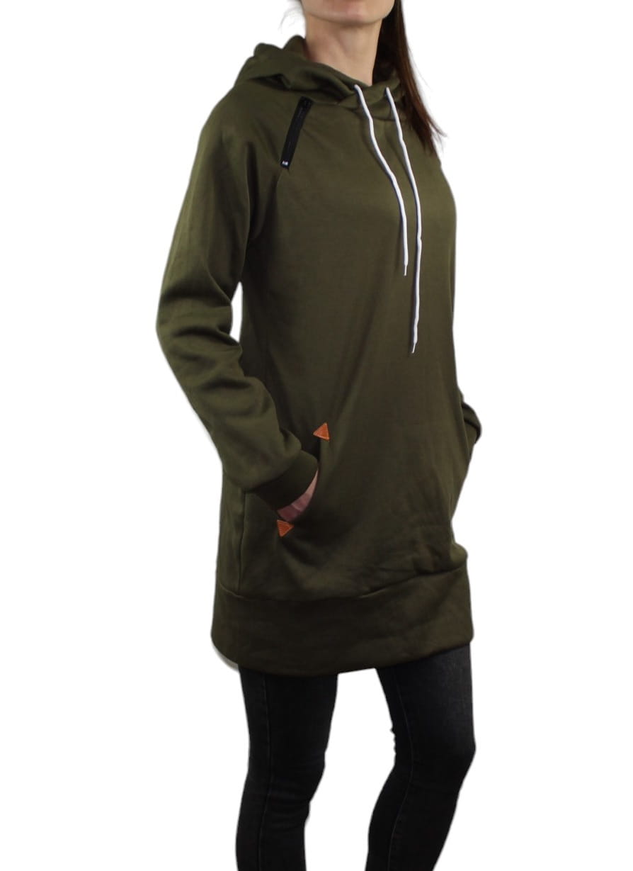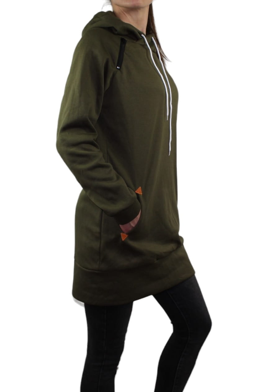 BLUZA DAMSKA Z KAPTUREM OLIWKOWA DŁUGA OCIEPLANA XXL OUTLET