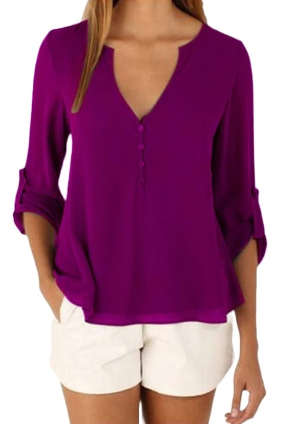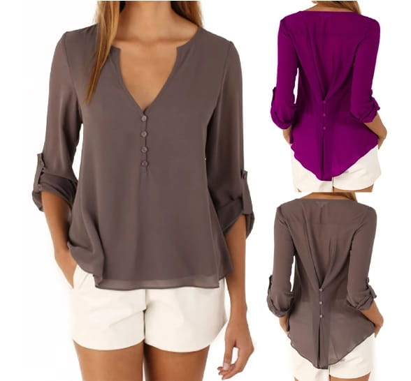 Długi rękaw z opcją podwinięcia sprawia, że bluzka świetnie sprawdzi się zarówno w pracy, jak i w codziennych stylizacjach.