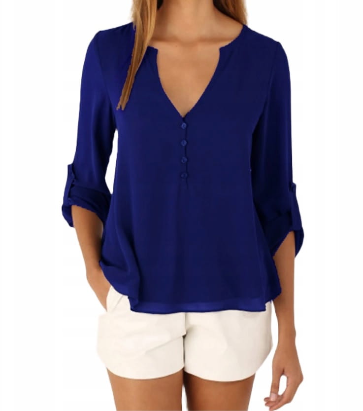 Bluzka damska elegancka szyfonowa dekolt V guziki M L XL XXL 3XL Maggie OUTLET
