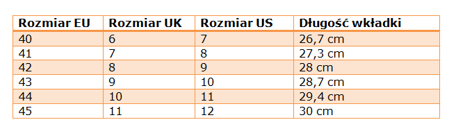 Wymiary butów: