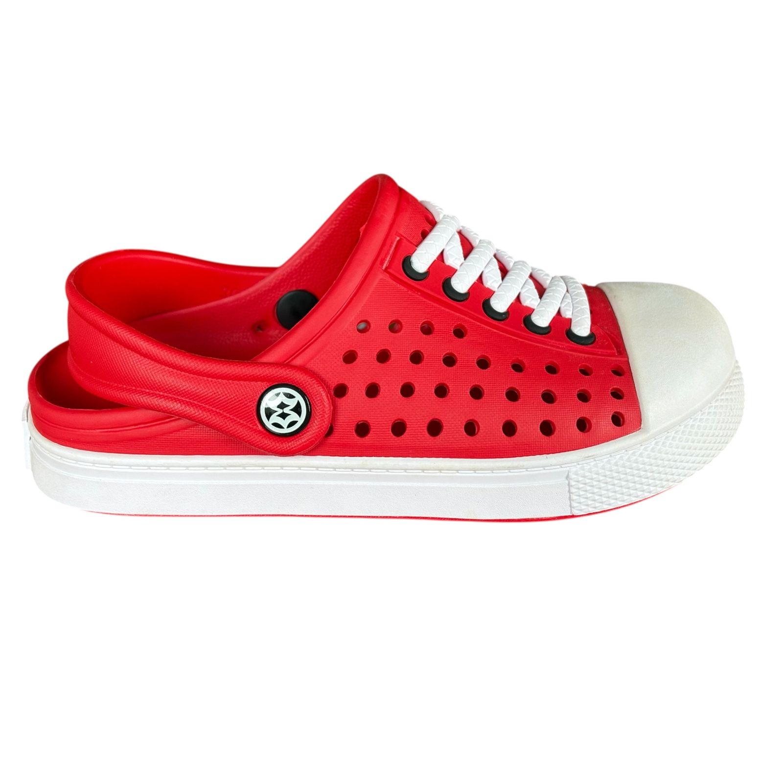 Chodaki dziecięce KV BABY w kolorze czerwonym to lekkie, wygodne i funkcjonalne klapki idealne na lato. Doskonale sprawdzą się jako buty dziecięce na basen, plażę, do ogrodu oraz do codziennego użytkowania.