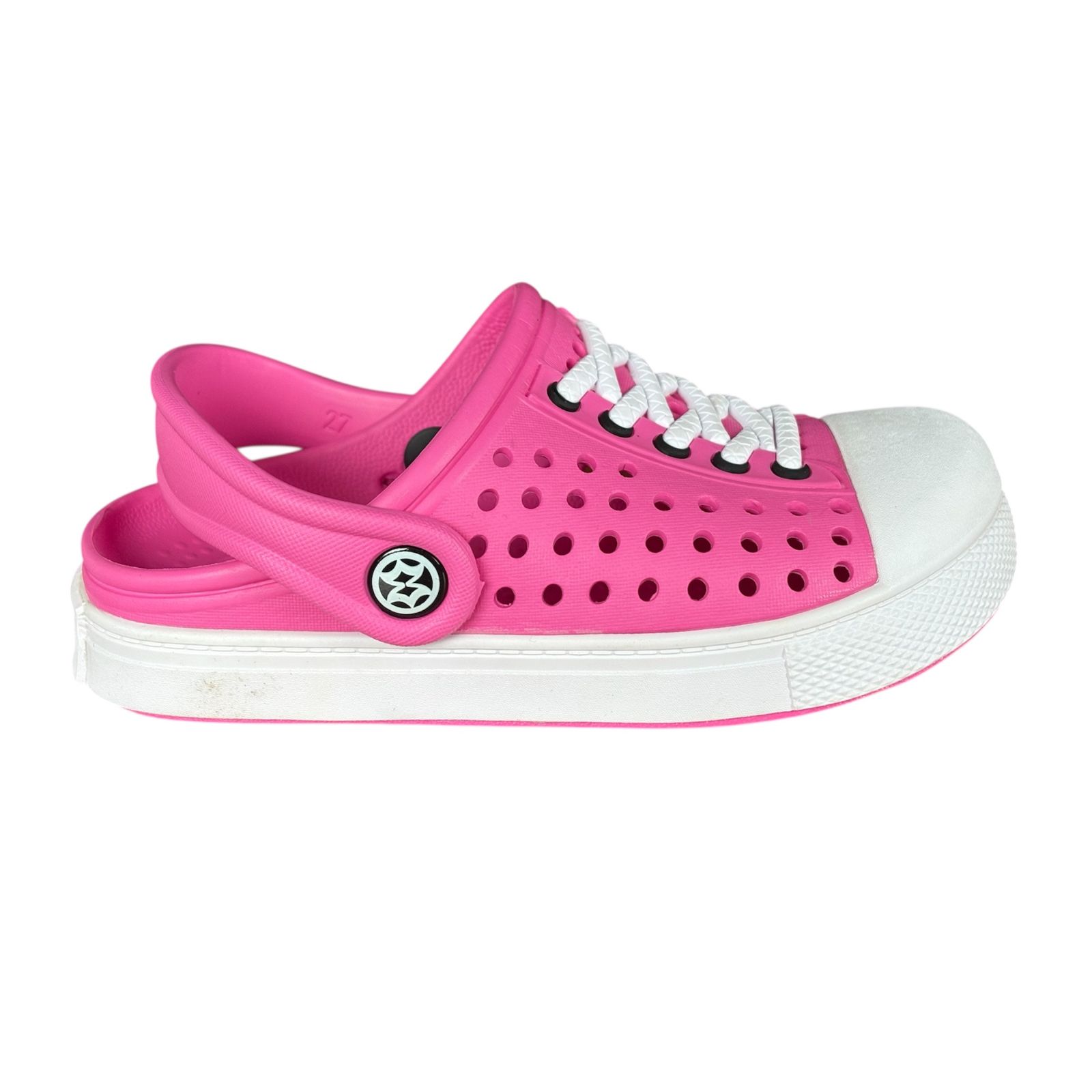 Chodaki dziecięce KV BABY w kolorze różowym to lekkie, wygodne i praktyczne klapki idealne na lato. Doskonale sprawdzą się jako buty dziecięce na basen, plażę, do ogrodu oraz do codziennego użytkowania.