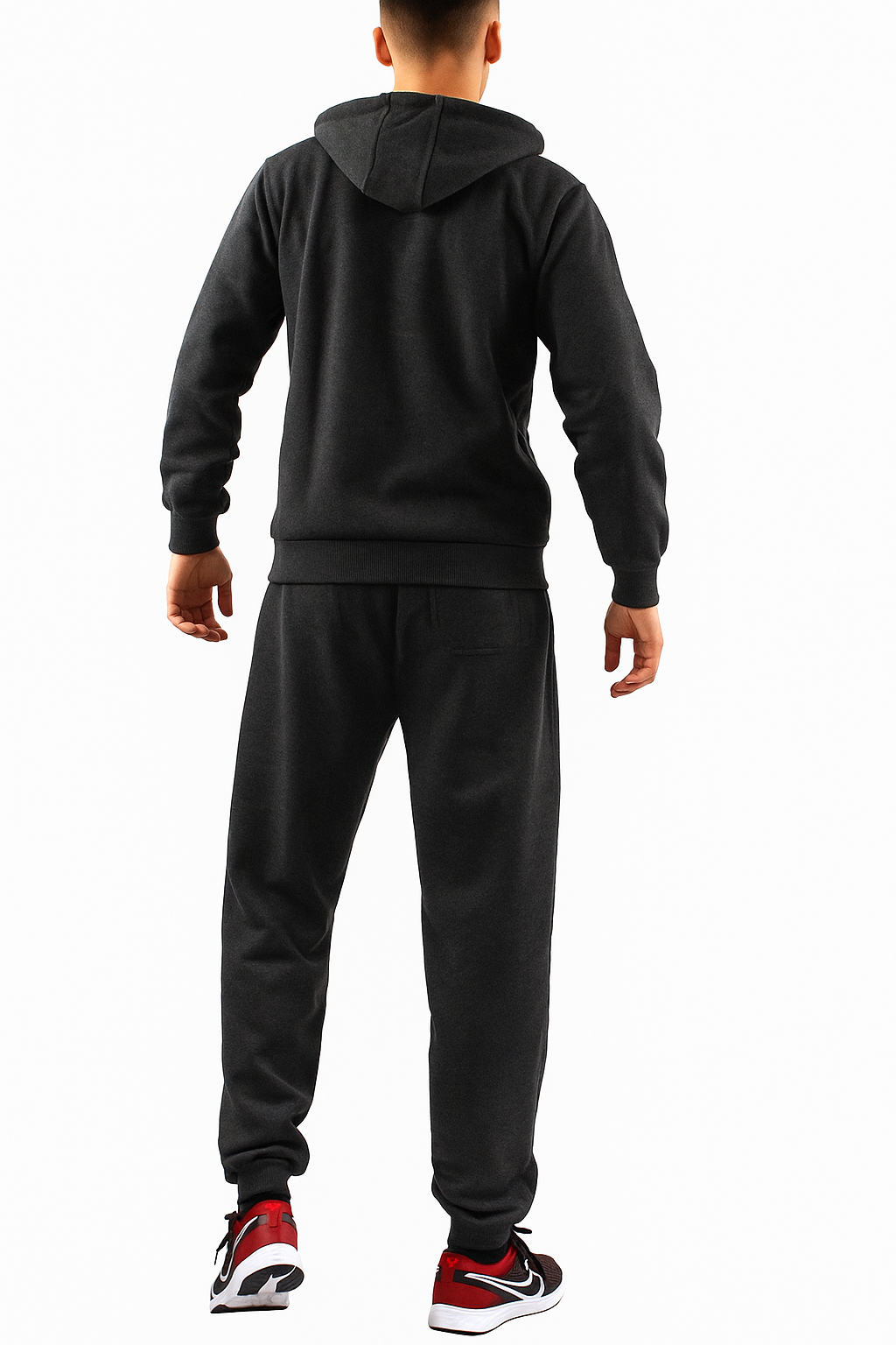 Komplet składa się z bluzy na zamek z kapturem oraz spodni o swobodnym kroju, dzięki czemu zapewnia pełną swobodę ruchów w każdej sytuacji.