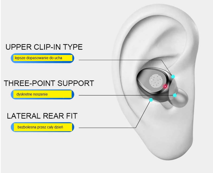 - Inteligentny dotyk, dotknij, aby odebrać / rozłączyć telefon, wyregulować głośność, przełączyć utwory, obudzić Siri