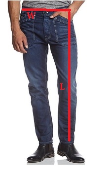L - długość nogawki (po zewnętrznej stronie)