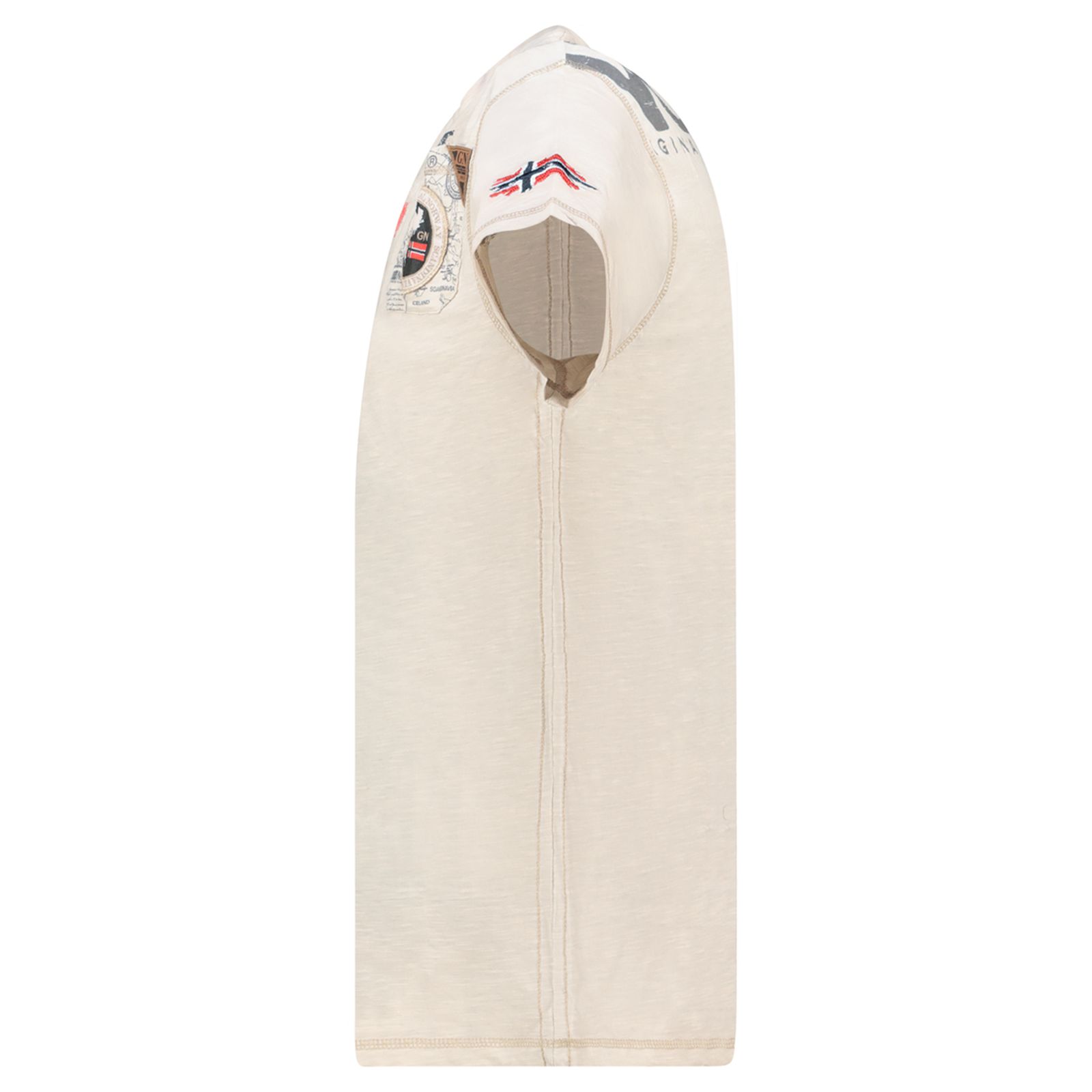 Koszulka Męska Beżowa 100% Bawełna Kieszonka Skórzany Detal T-shirt Jamo 254 Geographical Norway
