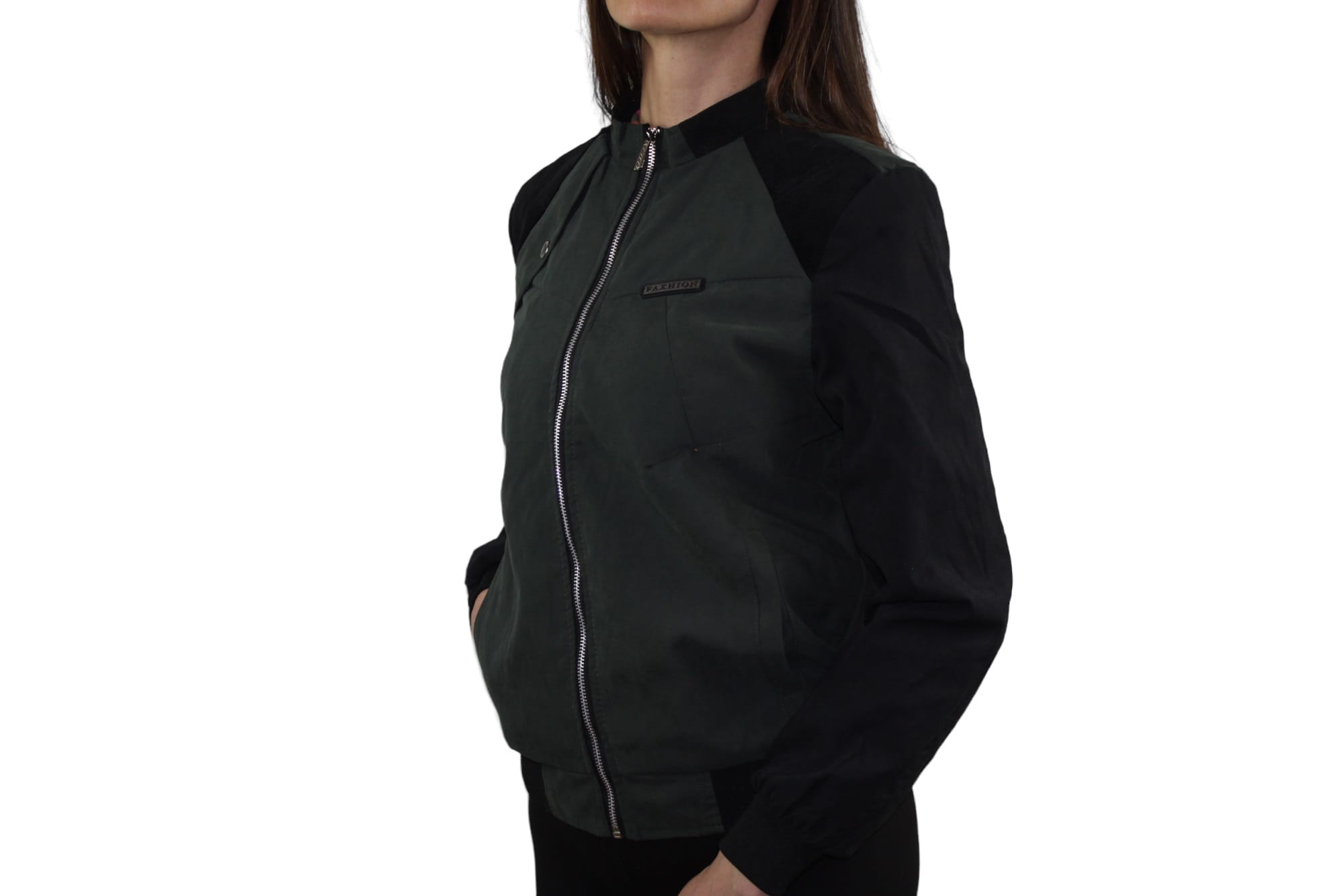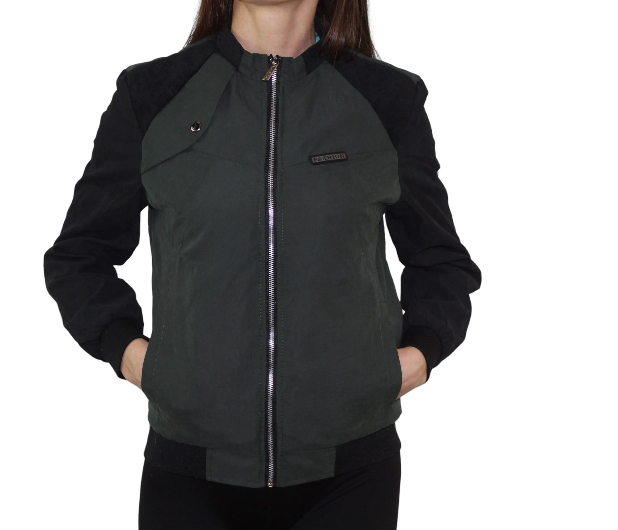 Kurtka damska bomberka Fashion style Manchengbuyi czarno-zielona