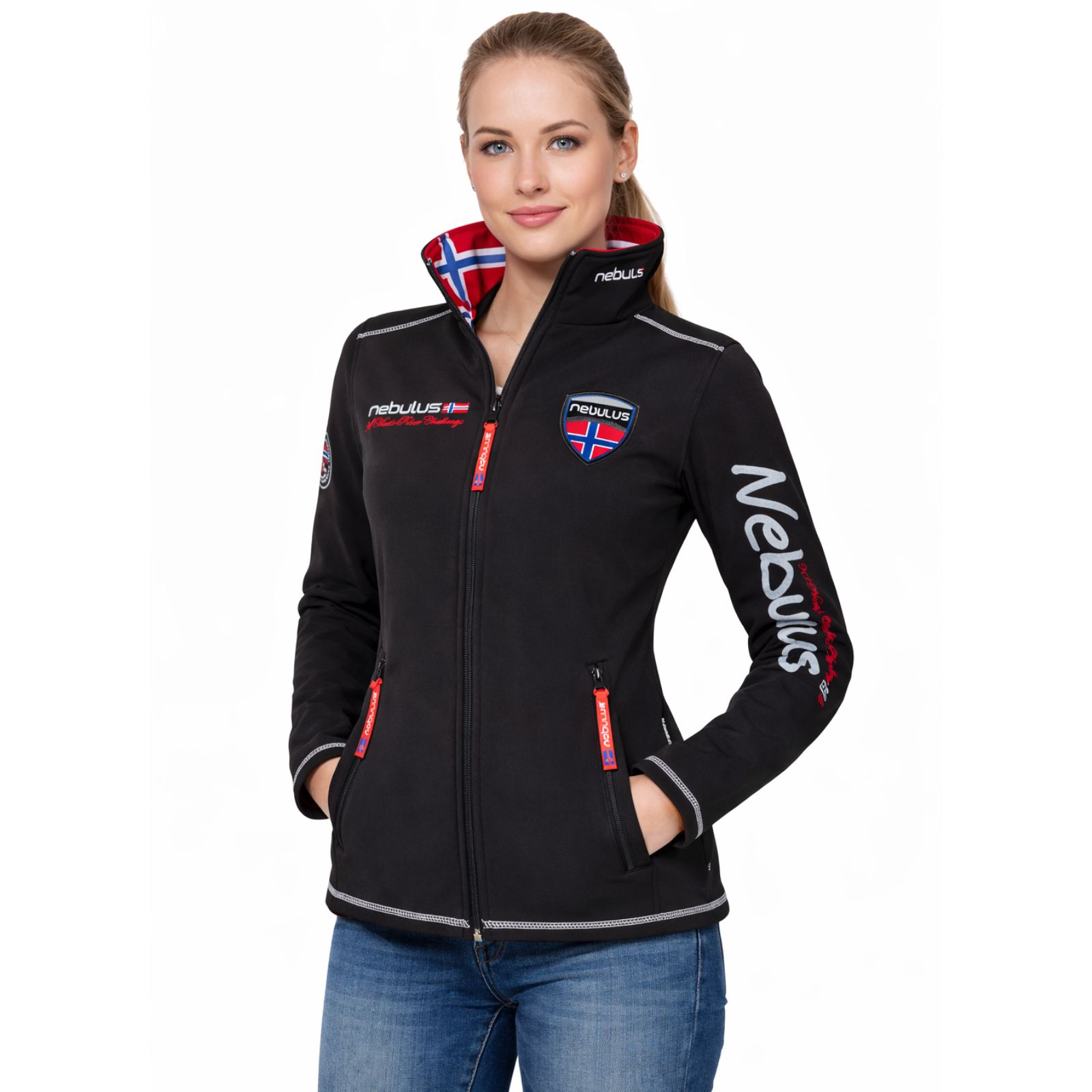 Damska kurtka softshell Nebulus w kolorze czarnym to połączenie sportowego stylu, wygody i skutecznej ochrony przed zmiennymi warunkami pogodowymi. To idealny wybór dla kobiet prowadzących aktywny tryb życia, które cenią funkcjonalność, komfort oraz nowoczesny wygląd.