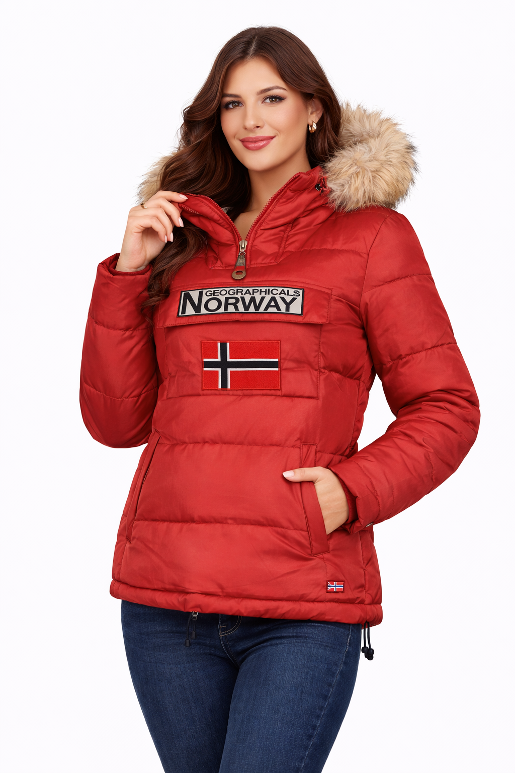 Kurtka damska narciarska puchowa Geographical Norway BELANCOLIE LADY – czerwona z kapturem