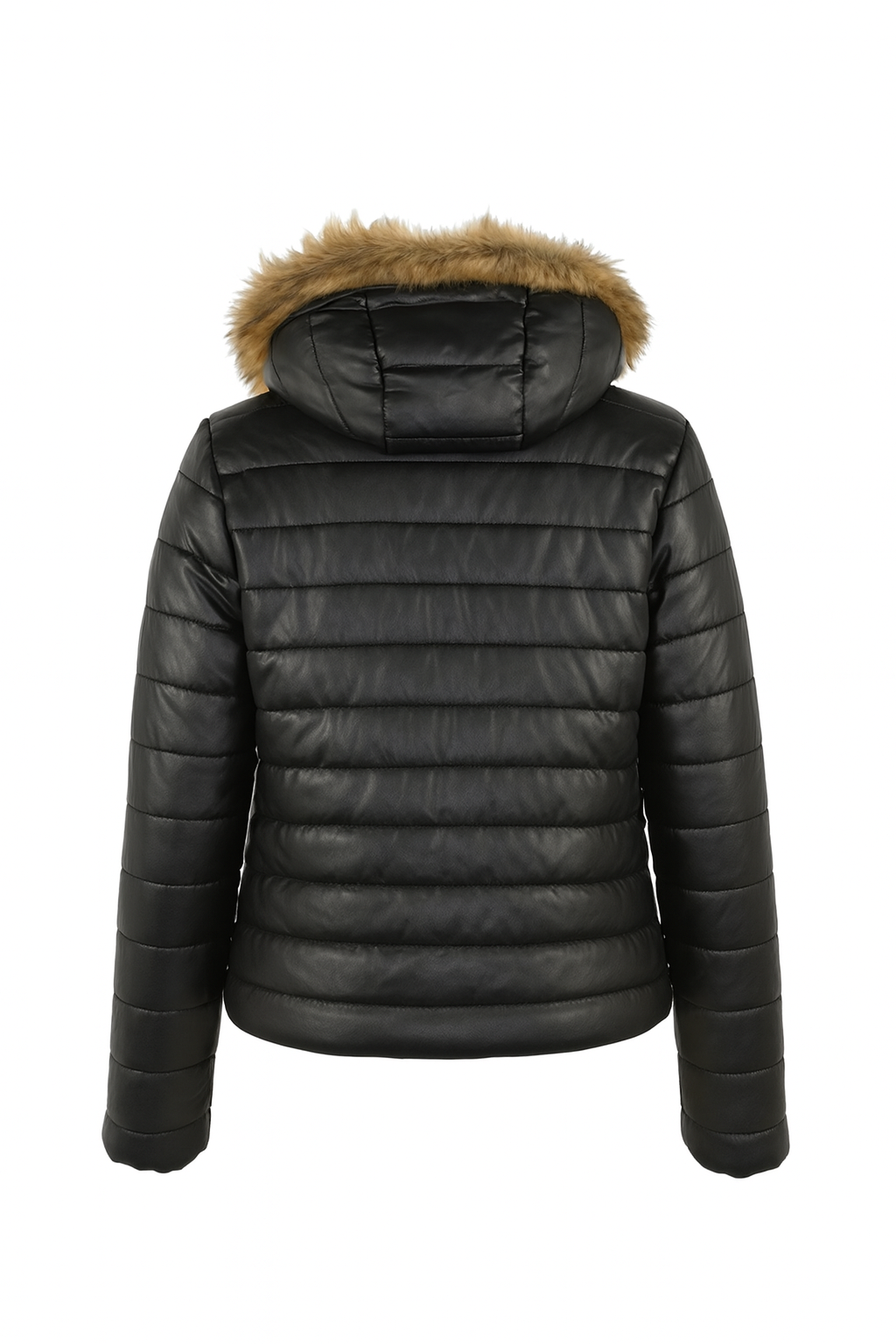 Kurtka damska pikowana ekoskóra z futerkiem czarna OUTLET