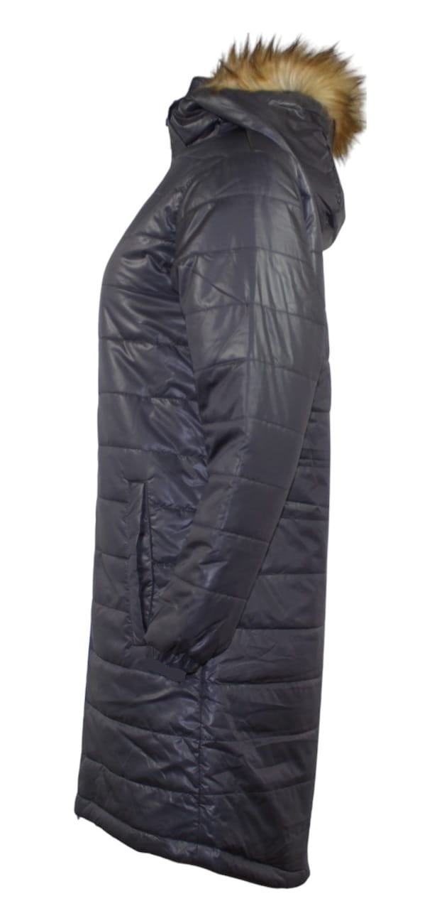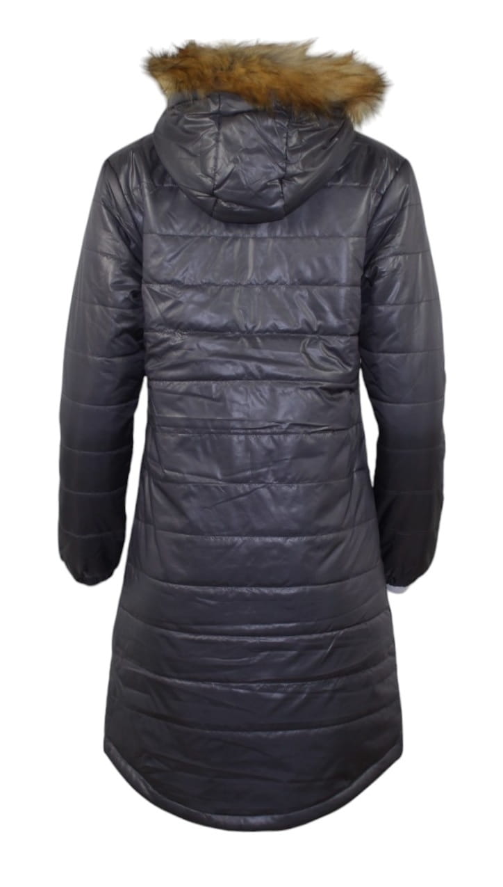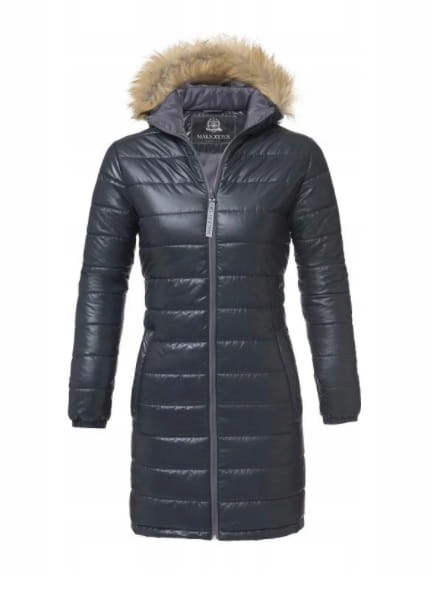 Kurtka damska pikowana zimowa długa kaptur futerko Malexxius Lucretia
