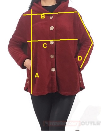 | (C) szerokość pod pachami | 60 cm | 61 cm | 62 cm | 63 cm |