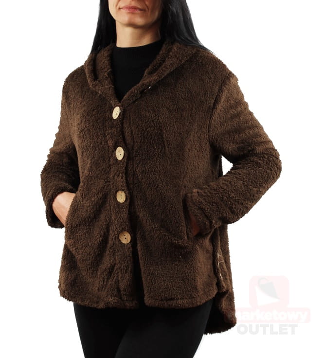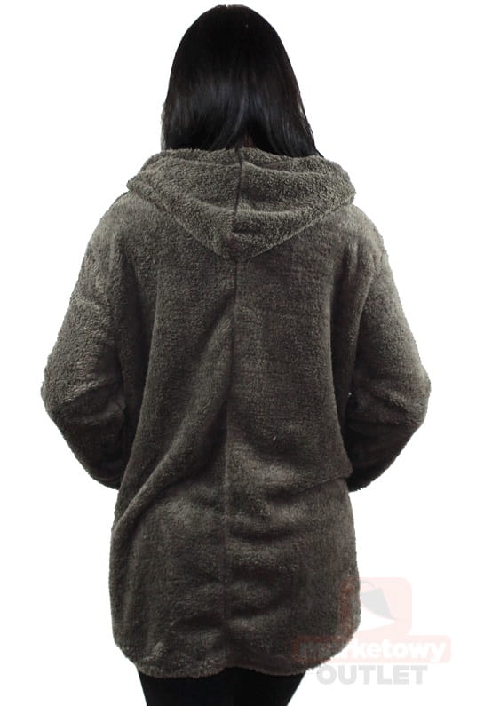 Kurtka damska pluszowa z kapturem ciepła oversize duże rozmiary OUTLET