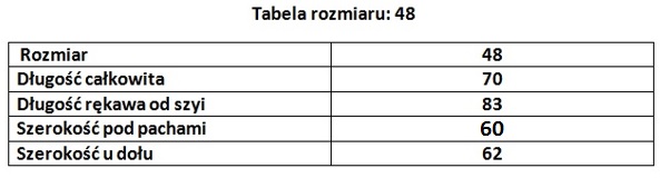 Rozmiar 48 odpowiada najczęściej XL, jednak zalecamy sprawdzenie wymiarów przed zakupem.