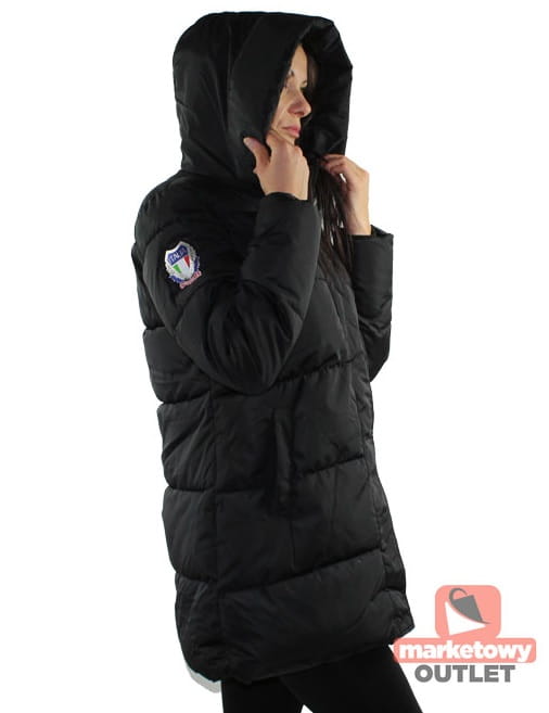 Kurtka damska zimowa parka pikowana kaptur czarna lekka Italia