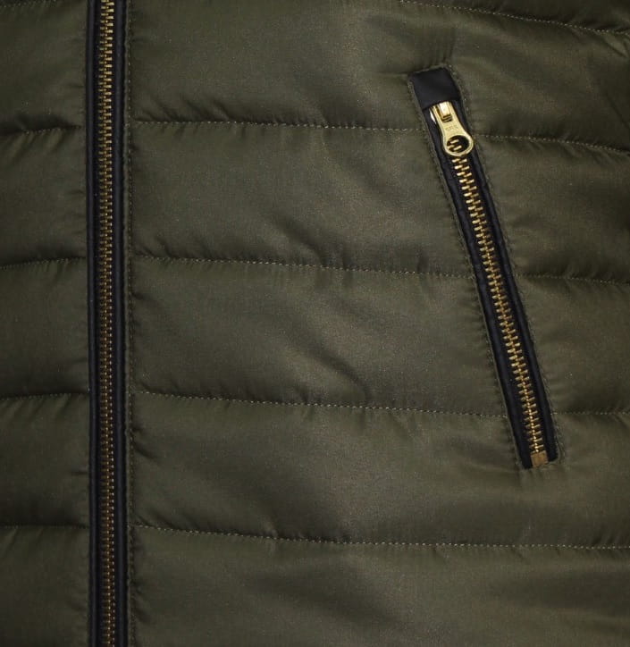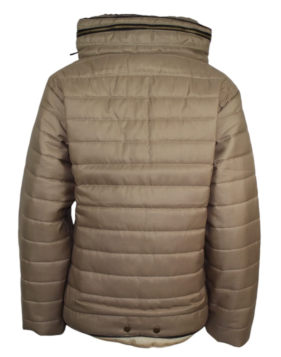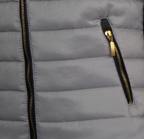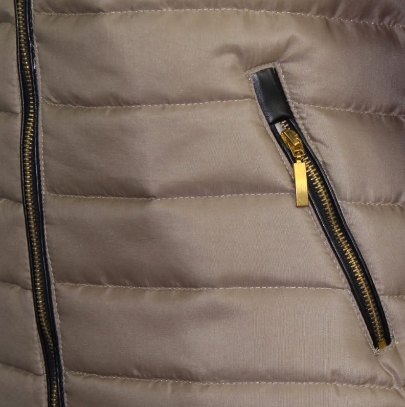 Stylowym wyróżnikiem kurtki jest wykończenie lamówką ze skóry ekologicznej, które nadaje całości bardziej elegancki, dopracowany wygląd.
