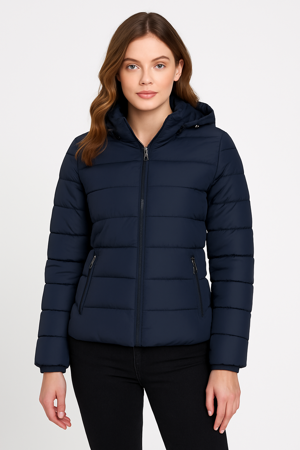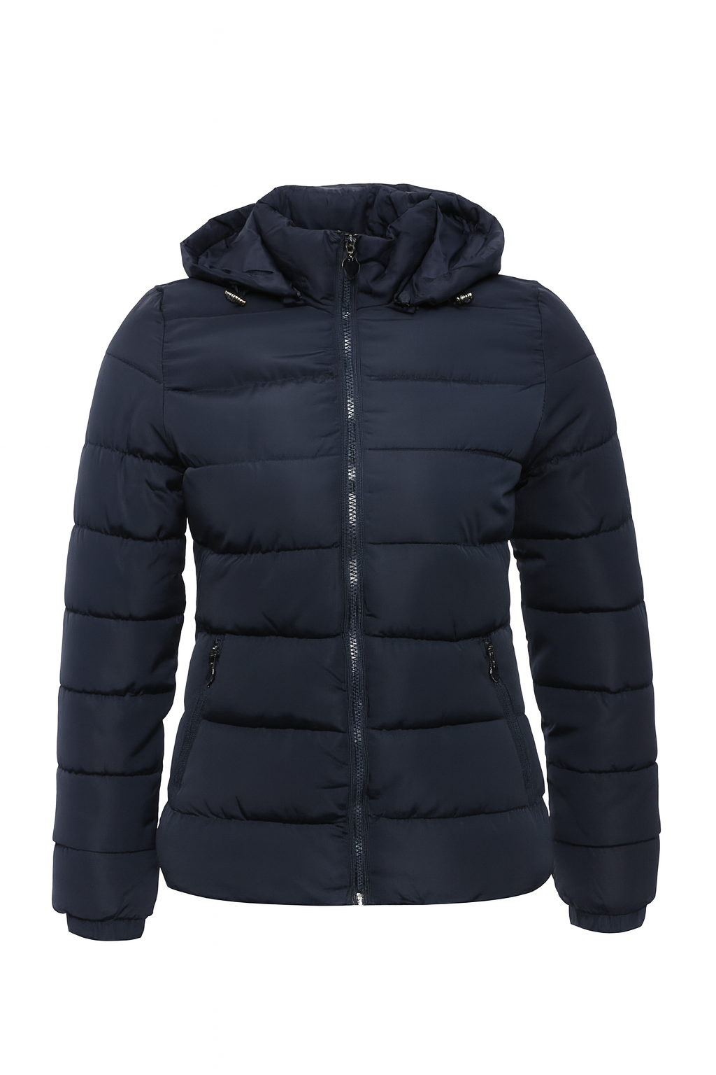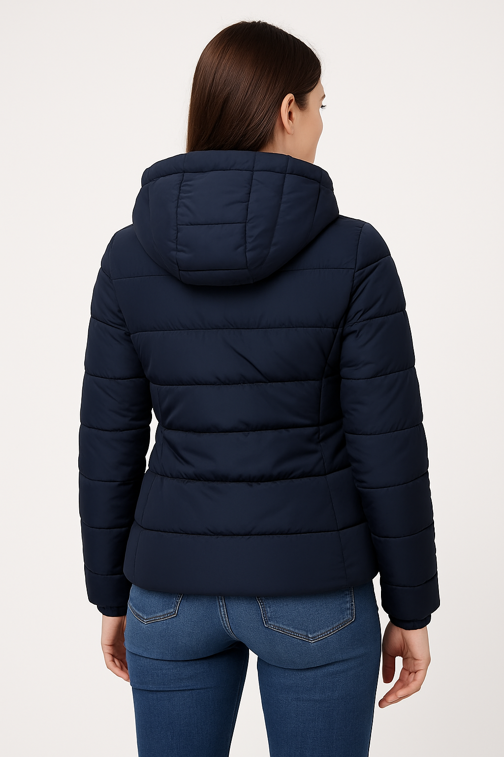 Klasyczny granatowy kolor to uniwersalny wybór, który łatwo dopasować do różnych stylizacji – od sportowych po bardziej eleganckie. Pikowana konstrukcja nadaje całości nowoczesnego wyglądu i poprawia właściwości termoizolacyjne.