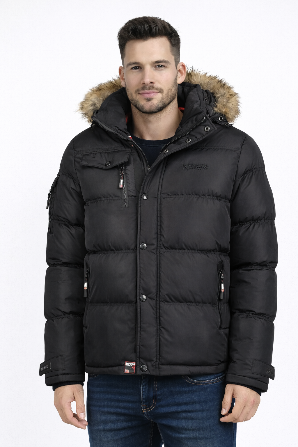 Kurtka męska zimowa puchowa Geographical Norway BONAP – czarna z kapturem