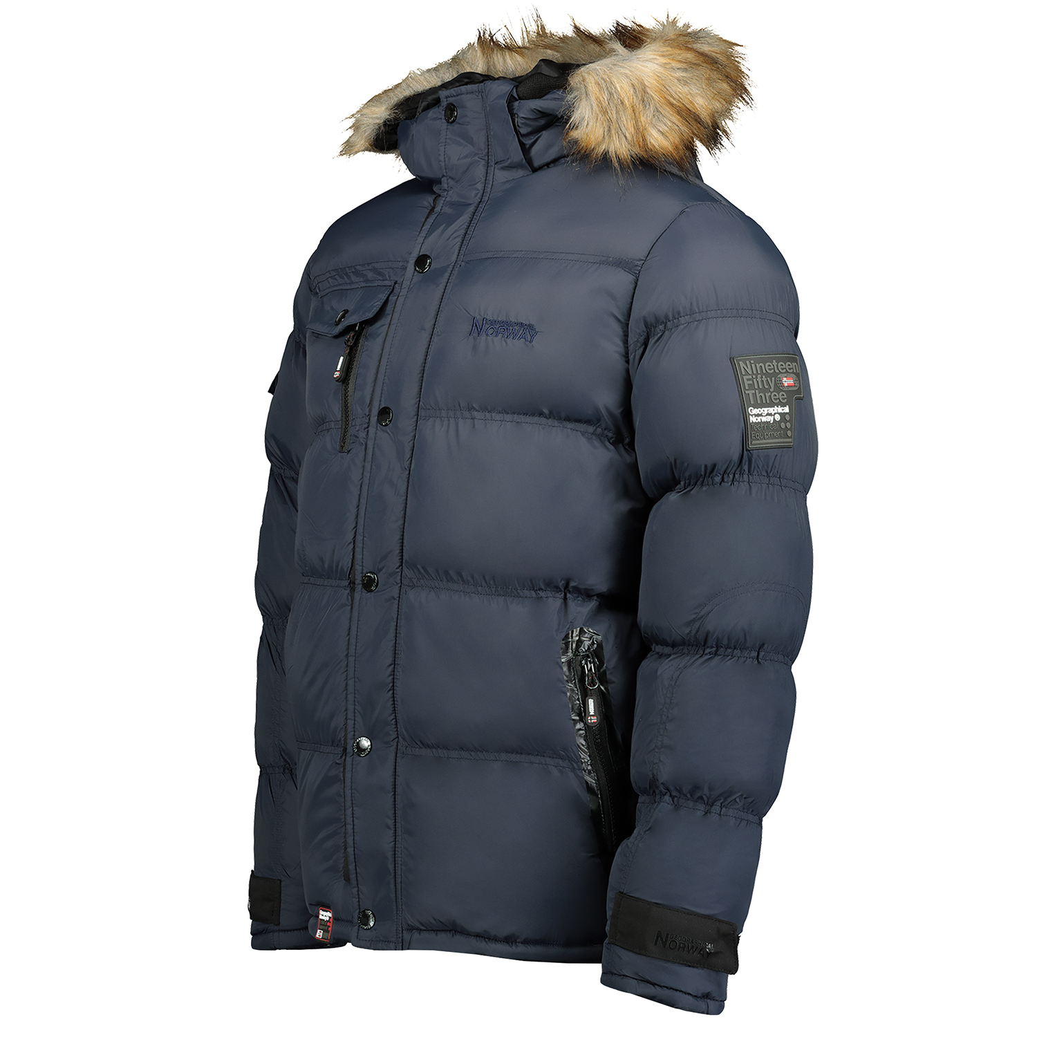 Kurtka męska zimowa Geographical Norway BONAP to propozycja dla mężczyzn, którzy cenią solidną ochronę przed zimnem, wygodę oraz nowoczesny, ponadczasowy styl. Model doskonale sprawdzi się zarówno w miejskich stylizacjach, jak i podczas codziennych aktywności na świeżym powietrzu w chłodniejsze dni. Granatowy kolor nadaje kurtce uniwersalnego, eleganckiego charakteru, który łatwo dopasować do wielu stylizacji.