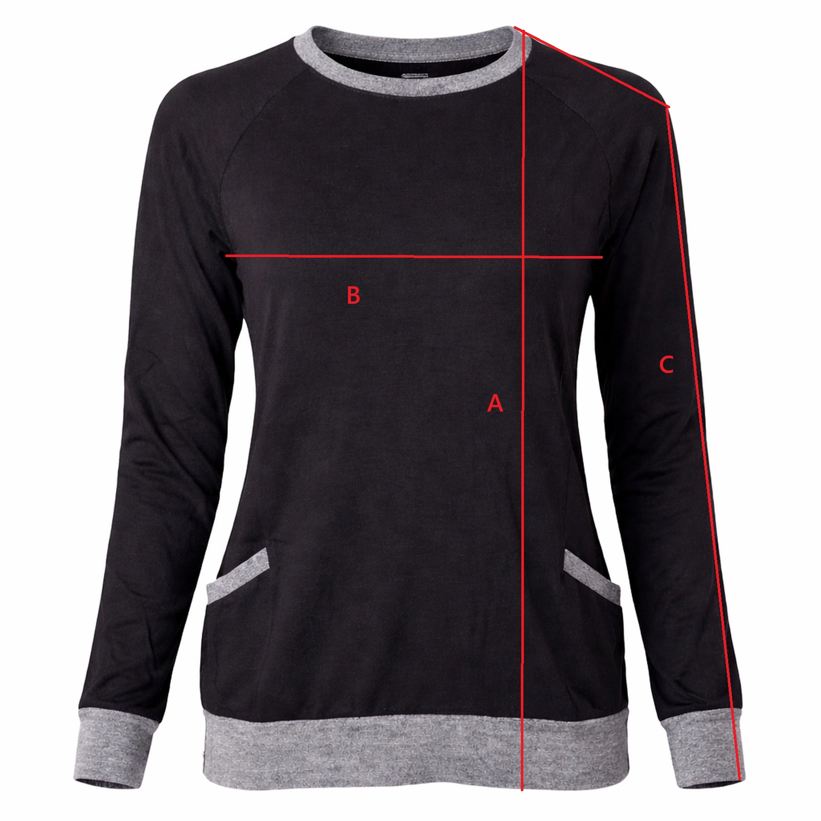 - B – szerokość pod pachami: 47 cm