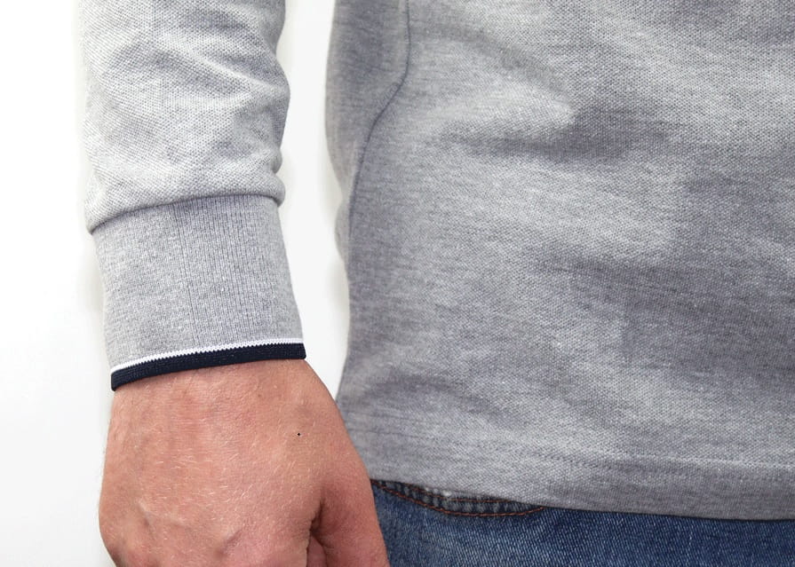 - Wykończenie kontrastowe ściągacza wokół rękawów i kołnierza