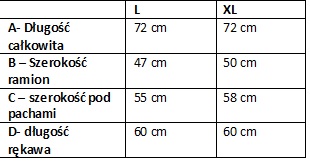 Tabela z wymiarami: