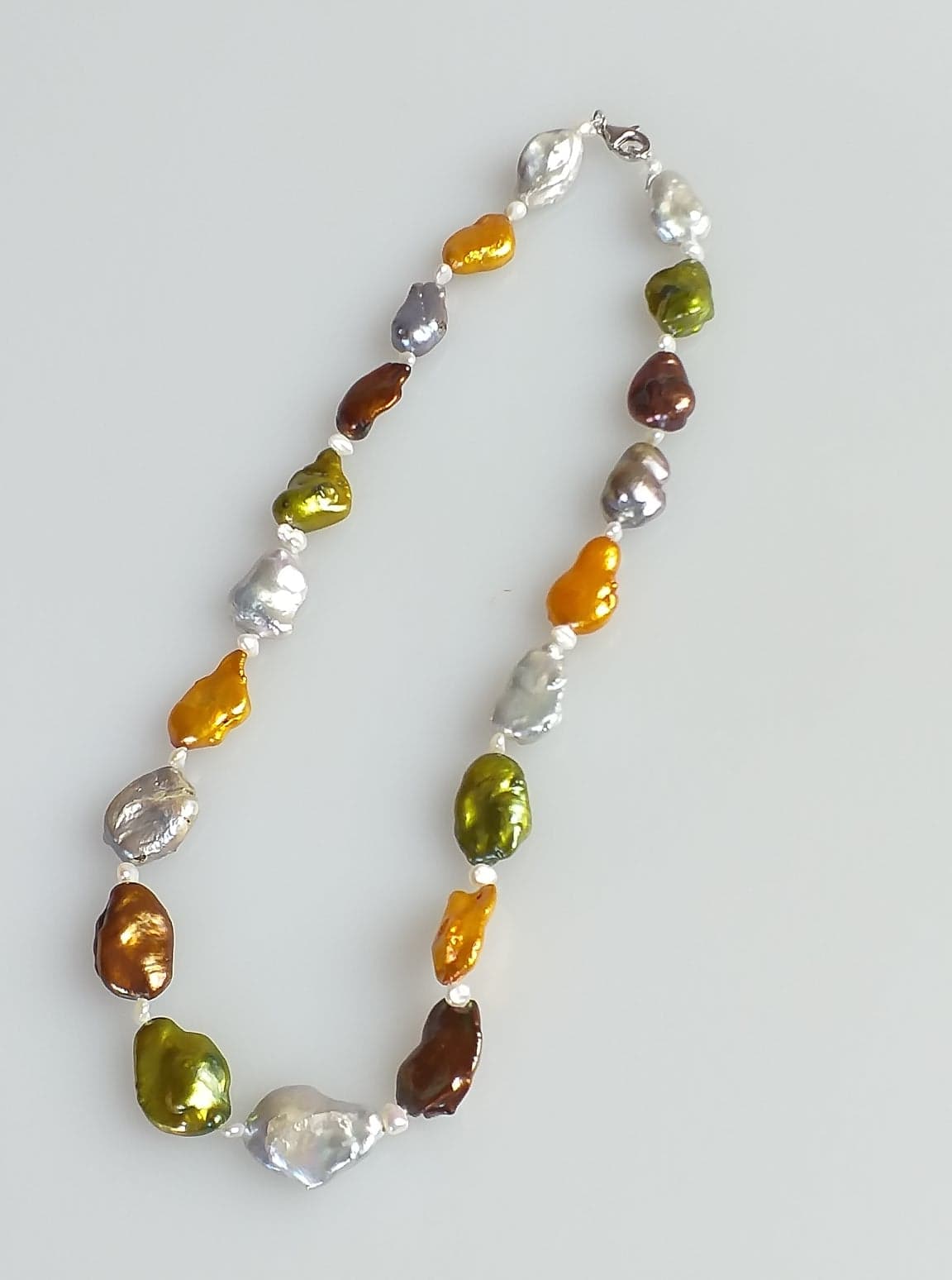 Srebrny naszyjnik z naturalnymi perłami słodkowodnymi