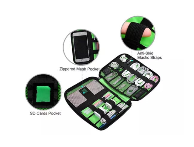 Przechowuj akcesoria elektroniczne, takie jak kable do ładowania i urządzenia USB, w jednym poręcznym miejscu za pomocą tego organizera do kabli i gadżetów. Utrzymuj kable, przewody, ładowarki, dyski twarde i słuchawki w dobrym porządku