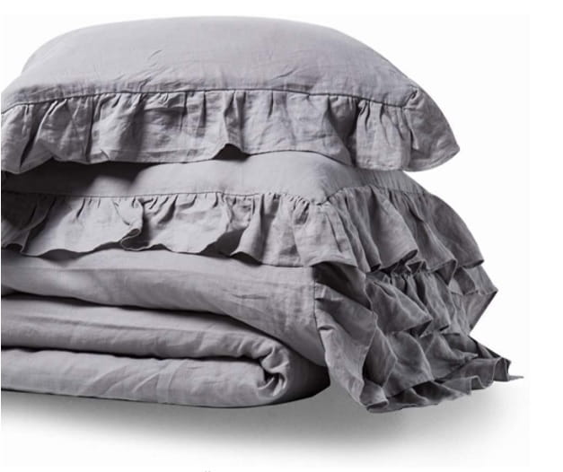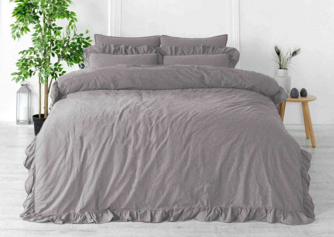 Pościel z falbanką w kolorze szarym na łóżko jednoosobowe 135 x 200 cm + 1 poszewka na poduszkę marki Heimtex.
