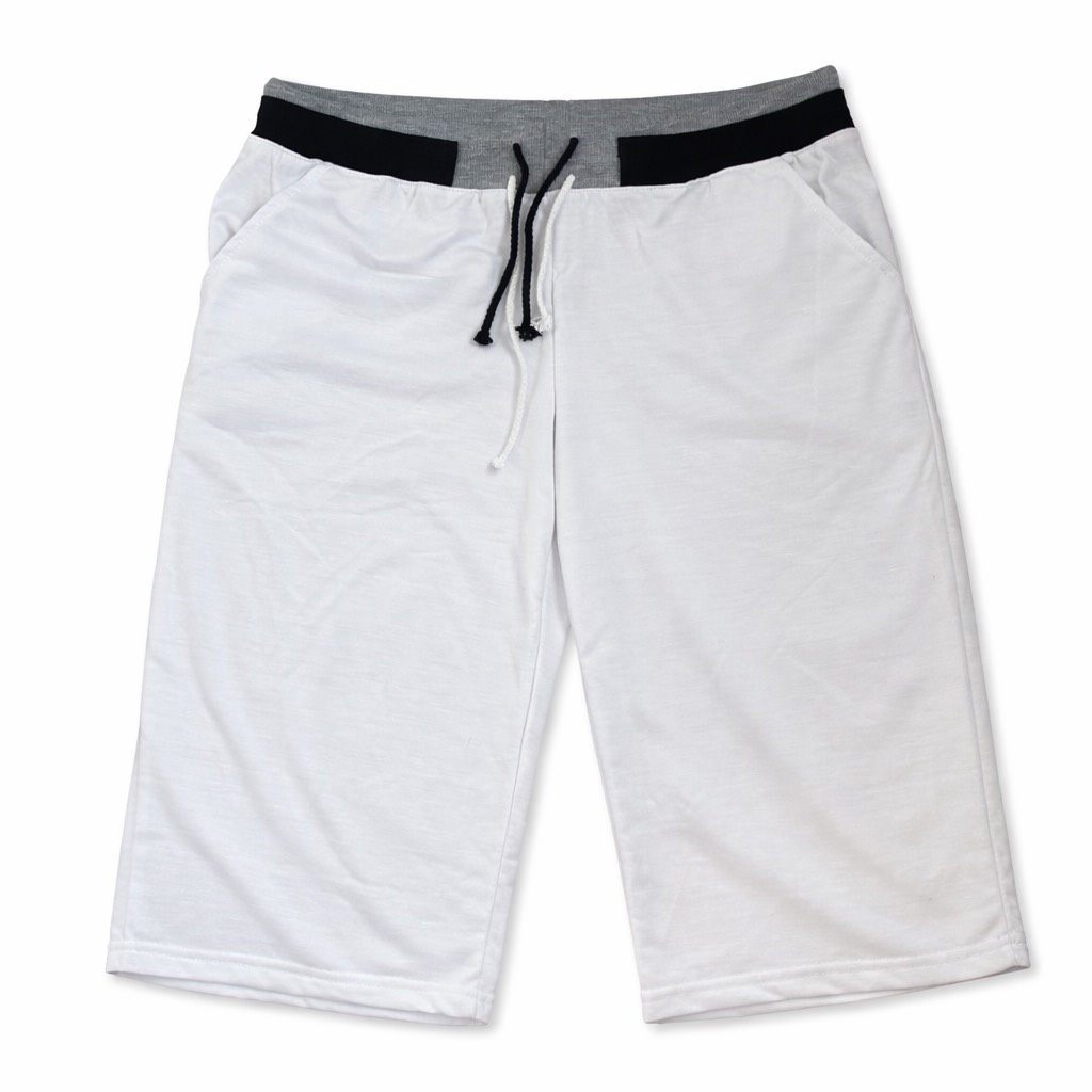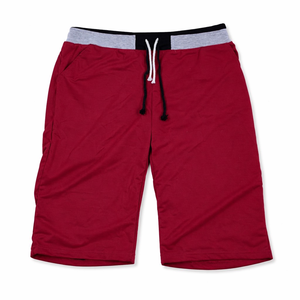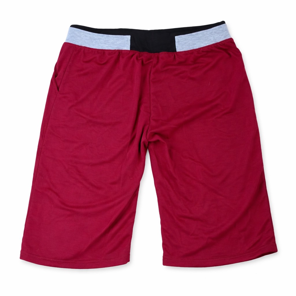Spodenki dresowe męskie do kolana sportowe bawełniane bordowe białe