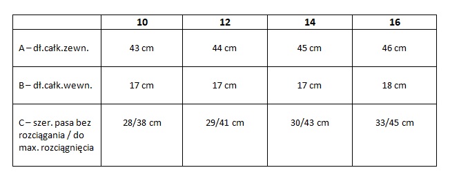 Dostępne rozmiary: 10 / 12 / 14 / 16