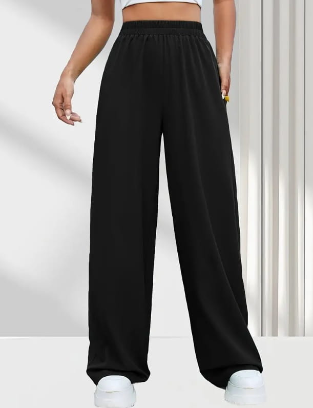 Spodnie damskie szerokie nogawki luźne czarne XXL na gumce przewiewne OUTLET
