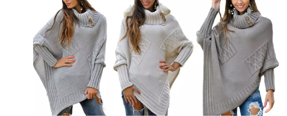 Poncho długimi rękawami w stylu nietoperza, to ciepłe i wygodne ponczo jest idealne na chłodne dni i świetnie pasuje do obcisłych dżinsów