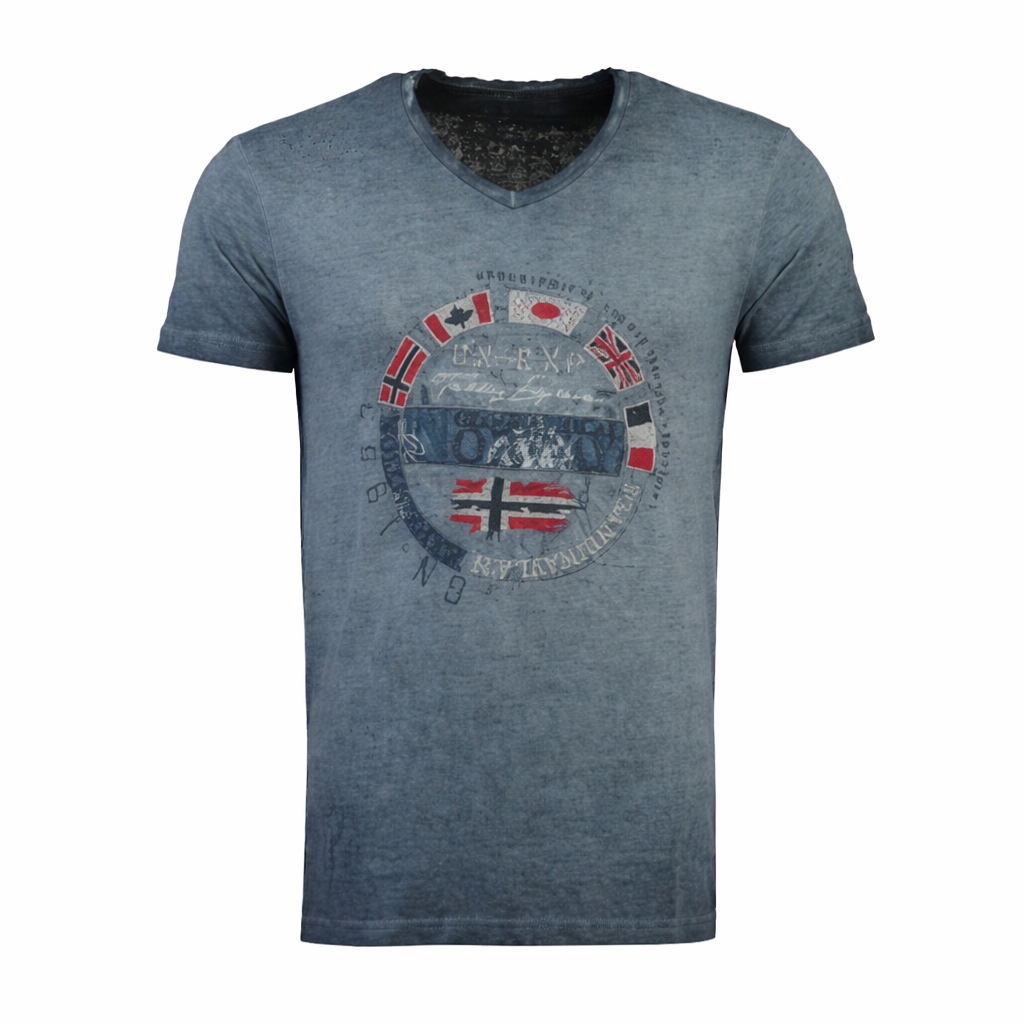 T-shirt męski granatowy bawełna V-neck sportowy na lato OUTLET JIMPEACH Geographical Norway