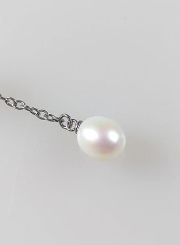 - Stalowa zawieszka na kolczyk, z łańcuszkiem i zawieszką z białej perły.